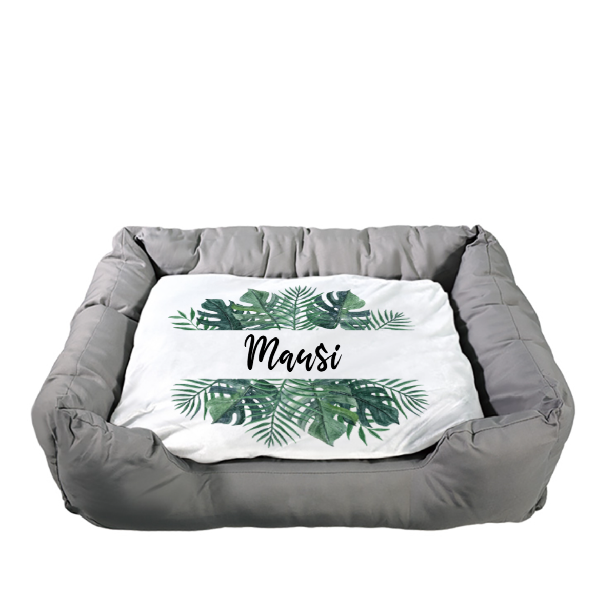 Tierbett mit tropischen Blättern, dunkelgrün, personalisiert