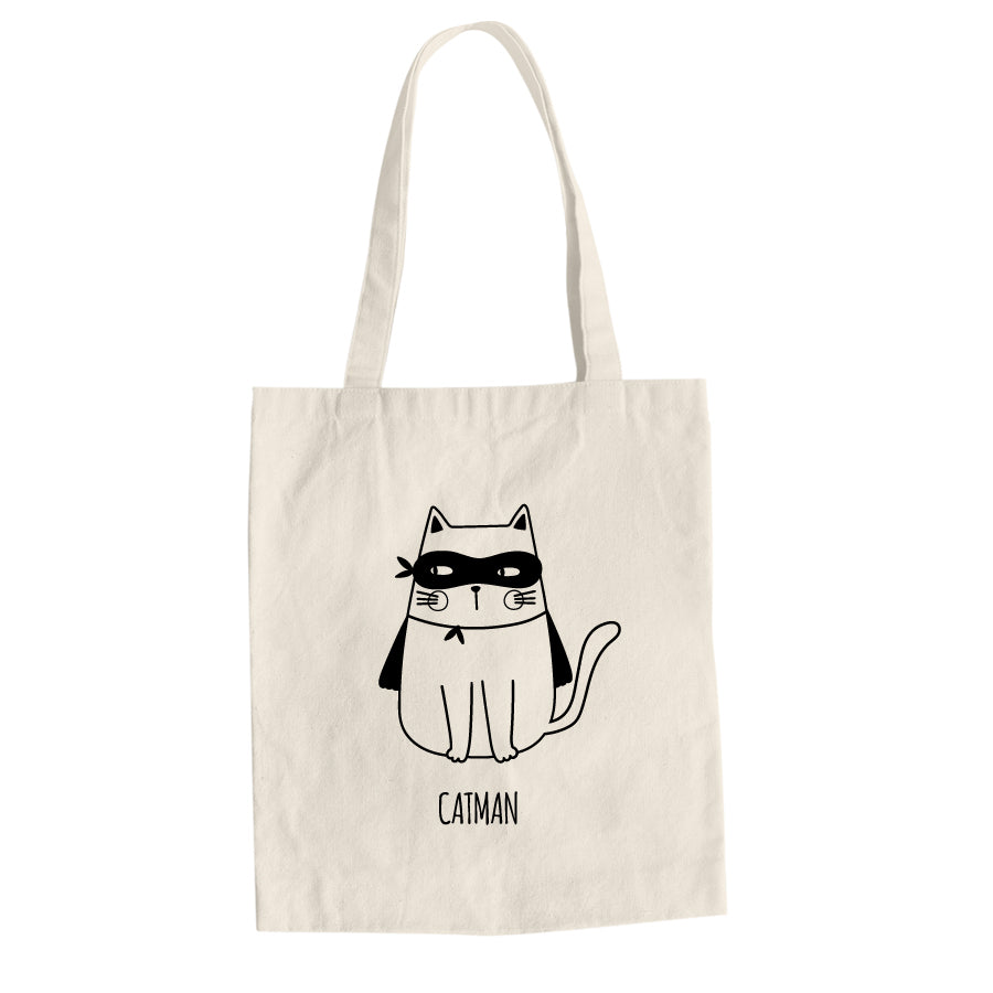 Baumwolltasche Catman Superheld Katze, personalisierbar